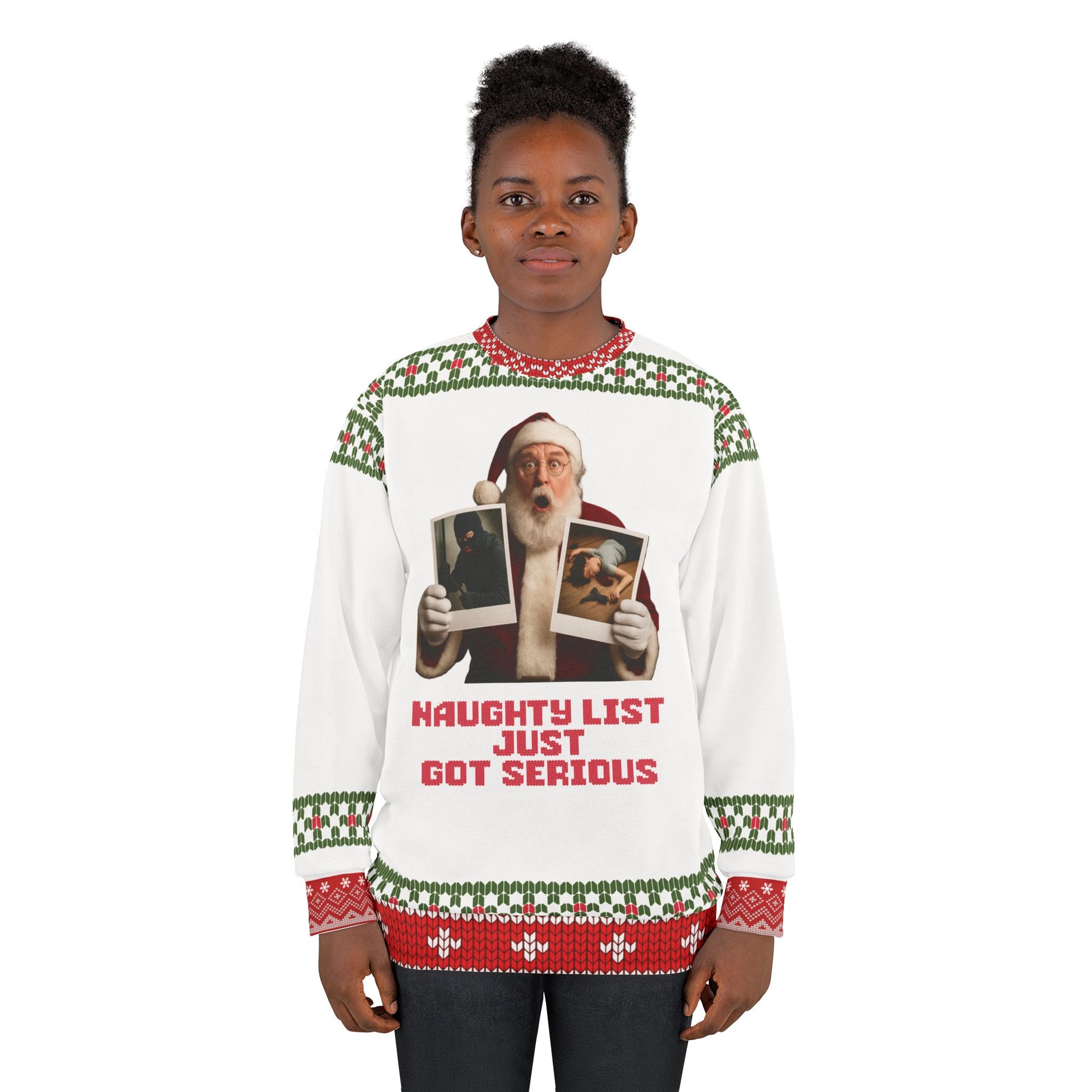 Funny Santa Christmas Sweater – “Naughty List Just Got Serious” Ugly Christmas Sweatshirt | Hilarious Holiday Sweater for Men & Women